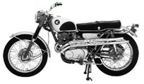 On Monterey Bay is another garage owned by Gordon Smith, a Vietnam vet who remembers those Honda glory days of the 60s by collecting mostly unrestored original CL72s and CL77s. He has a few other models but the CLs are his favorite. Shown on the left is a picture of his 62 CL72 taken back in 1964. When not working on his collection he likes to surf at various locations around the West Coast and Hawaii.